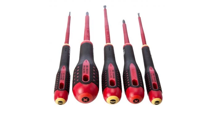 Jeu de tournevis ERGO™ isolés VDE pour vis à fente et Phillips avec manche tri-matière – 5 pcs