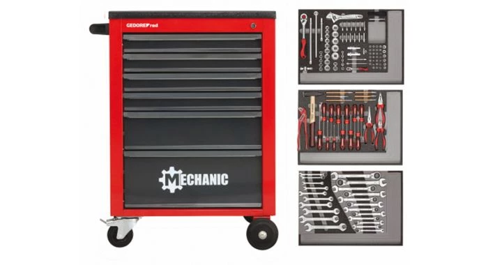 – Construction en tôle pleine, résistante à la torsion et plan de travail robuste avec couvercle en ABS- parois latérales avec trous carrés en Euro pour accessoires- 6 tiroirs avec rails télescopiques entièrement extensibles avec verrouillage individuel (fonctionnement manuel)- le loquet individuel de chaque plateau empêche l’ouverture des plateaux pendant le mouvement- capacité de charge de 25 kg par plateau, dimensions variables du plateau : L 482 x P 345 mm, hauteur avant de 4 x 69 mm, 1 x 144 mm, 1 x 218 mm- verrouillable au centre par un verrou à cylindre à 4 clés- 2 roulettes 100 mm, 1 roue avec butée totale, 2 roues boe 140 mm, à ressort latéral, offrant ainsi une grande stabilité